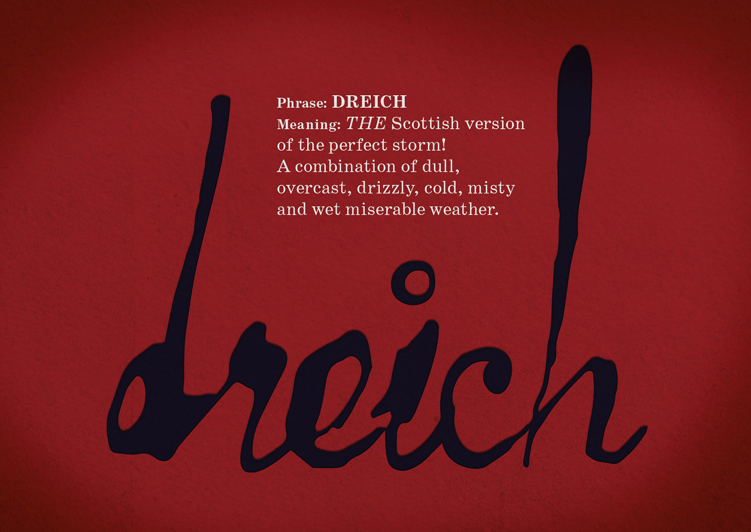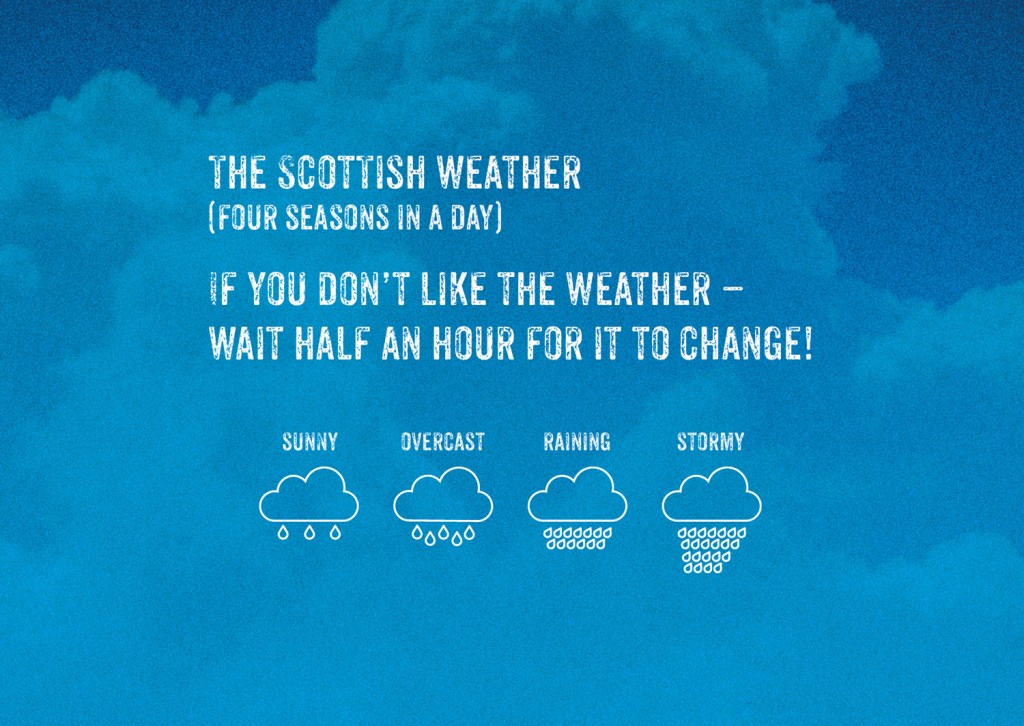 Dank, Dreich, Lashing, and Spitting are just a few of the many inclement words used to describe the weather in Scotland.